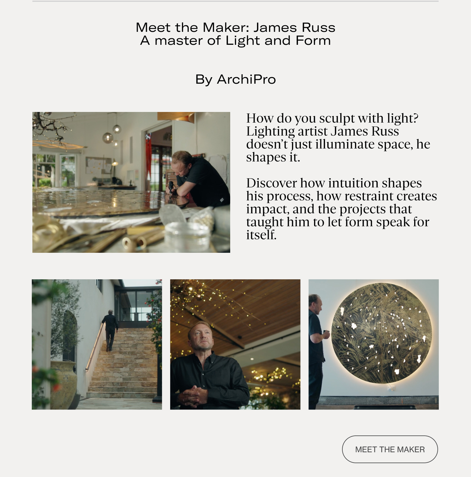 Plus, become immersed in the work of lighting artist James Russ, where quiet impact speaks volumes, and discover a refined travertine-look tile that blends timeless texture with modern form...